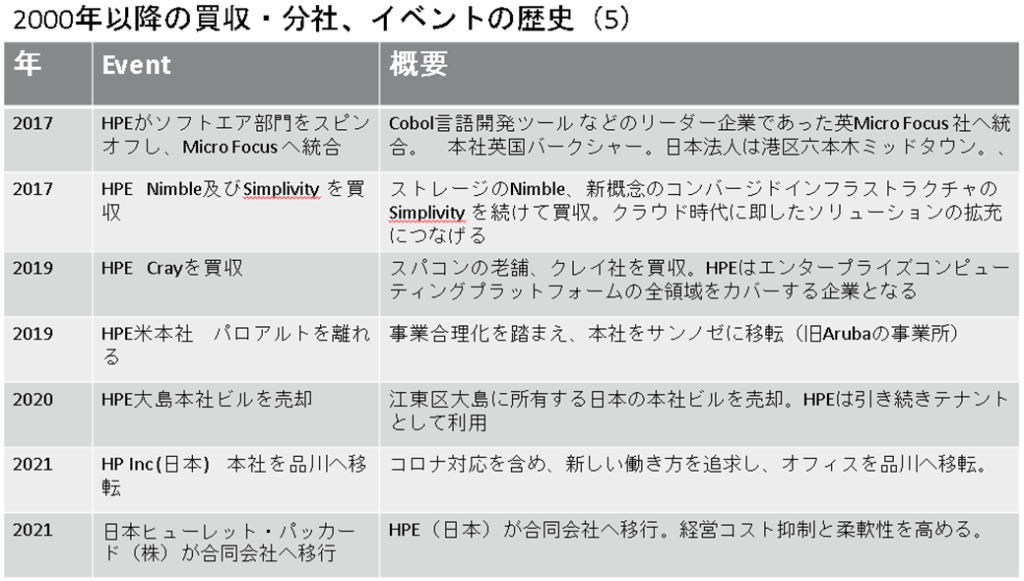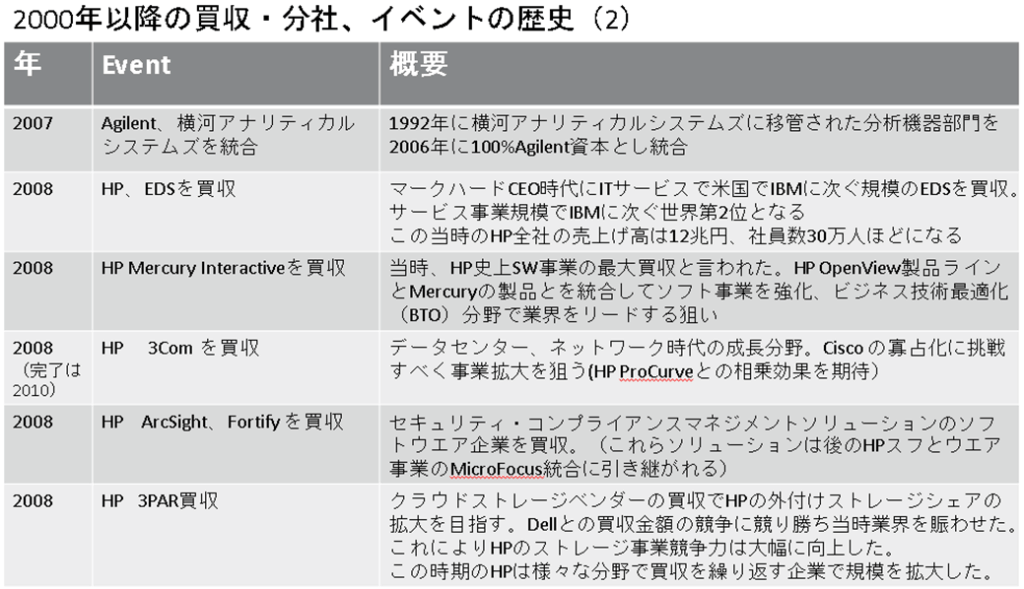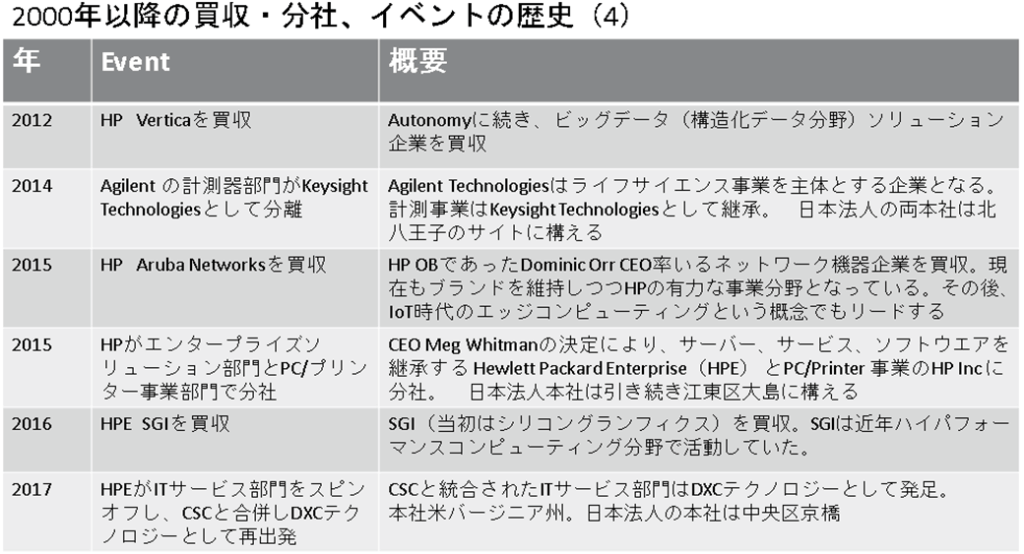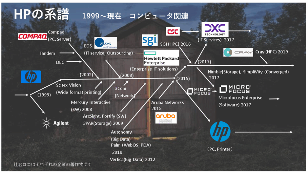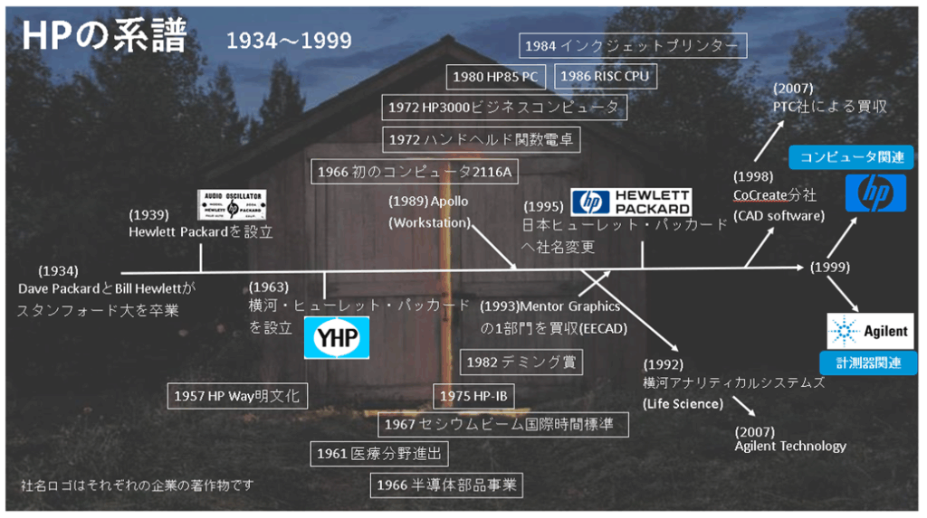 1939年Hewlett Packardが設立されて以降様々な企業/事業の買収、統合や分割、売却が行われてきました。今回HPOB会としてその系譜(チャートと年表)をまとめてみました。